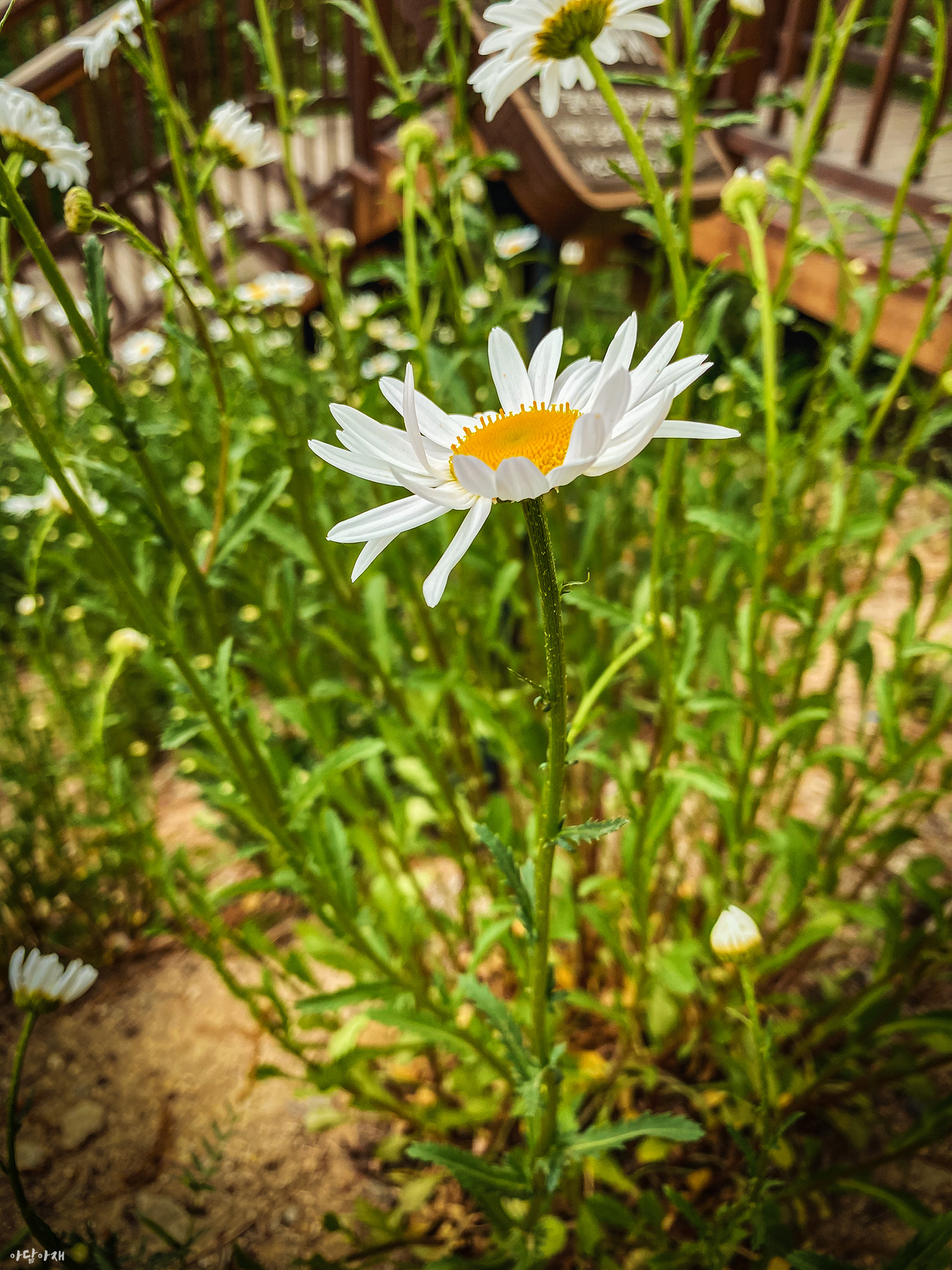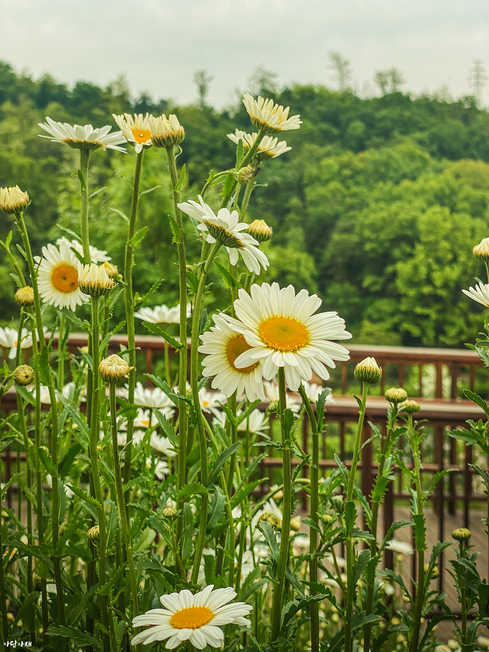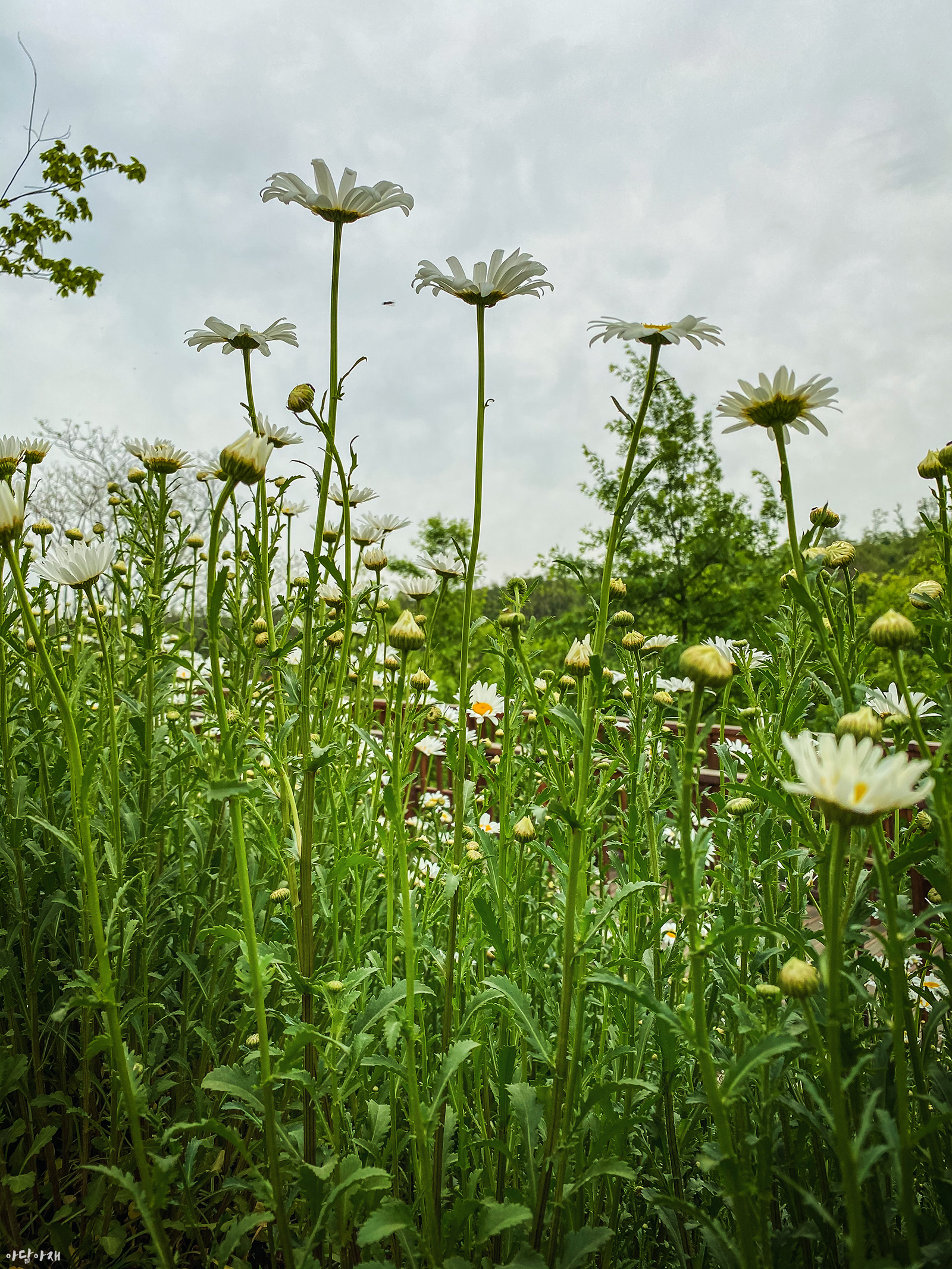 바람에 흔들리는 모습이 하얀 나비를 연상케 한다. 유독 심한 황사와 미세먼지 속에서 보는 샤스타데이지의 물결은 시원스럽게 보인다. 인도어로 샤스...