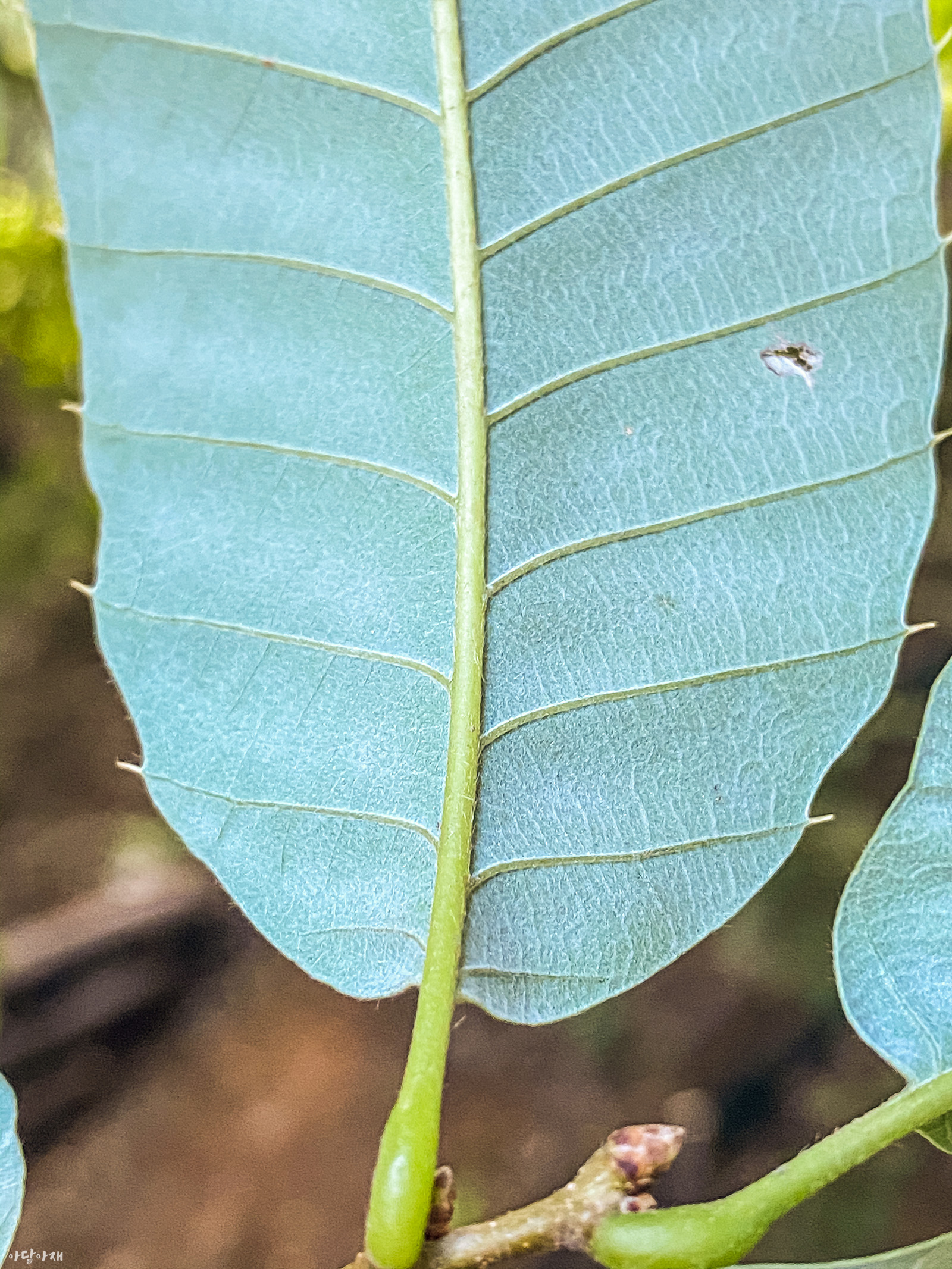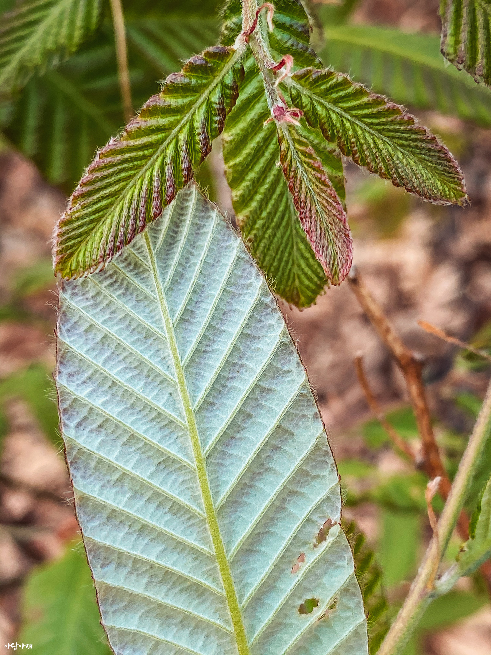 정릉참나무(Q. acutissisma X variabilis Nakai): 잎의 뒷면에는 대부분 단모가 나 있으나 때로 별모양털이 밀생한 것도 있으며 줄기의 코르크가 별로 발달하지 않았다.