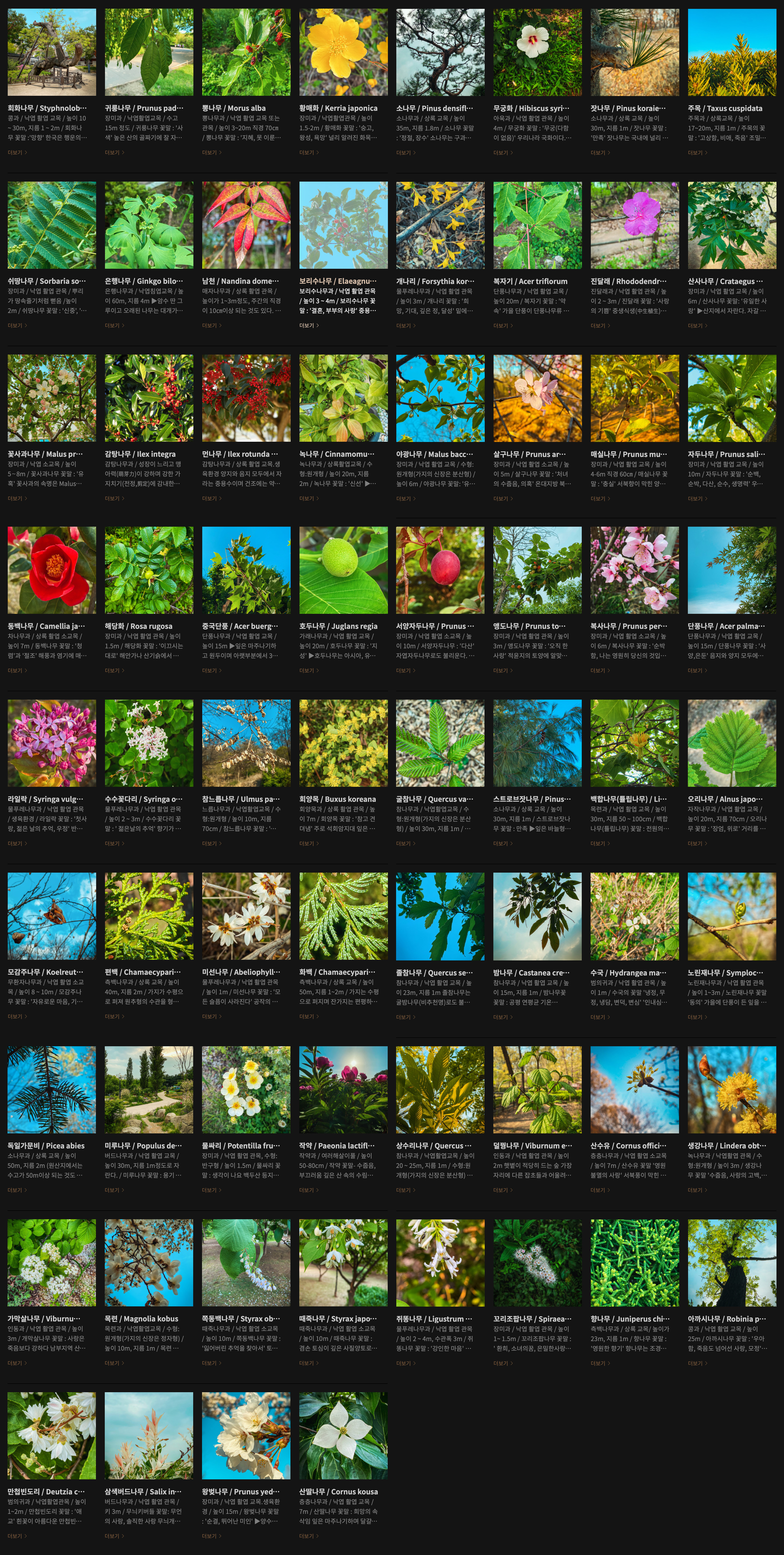 이미 공개된 수목에도 새로운 사진과 내용이 수시로 업데이트되고 있습니다.